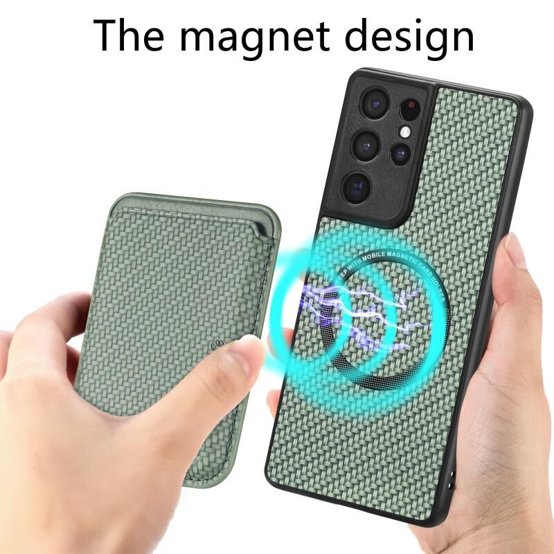 Θήκη τηλεφώνου Samsung Galaxy S21 Ultra 5G από ανθρακονήματα και δέρμα με κάρτες και μαγνητική σύνδεση MagSafe (Καφέ)