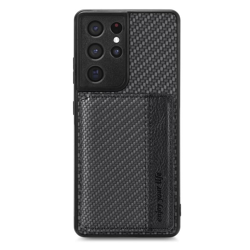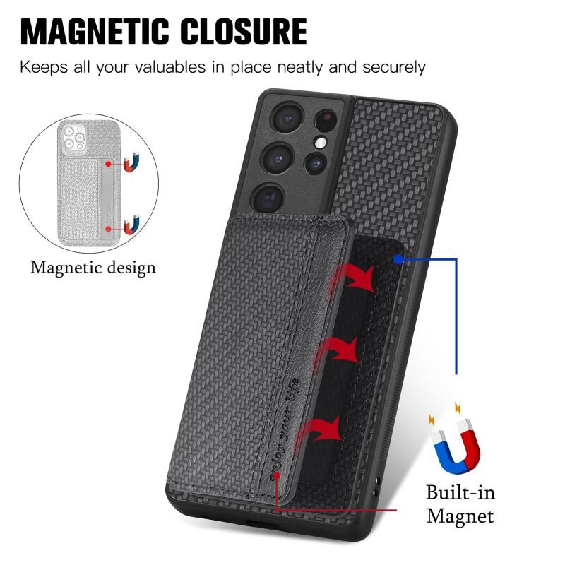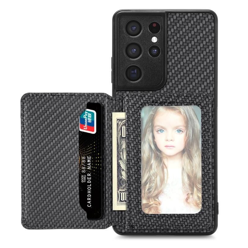 Για Samsung Galaxy S21 Ultra 5G Carbon Fiber μαγνητική κάρτα πορτοφόλι τσάντα θήκη τηλεφώνου (Μαύρο)