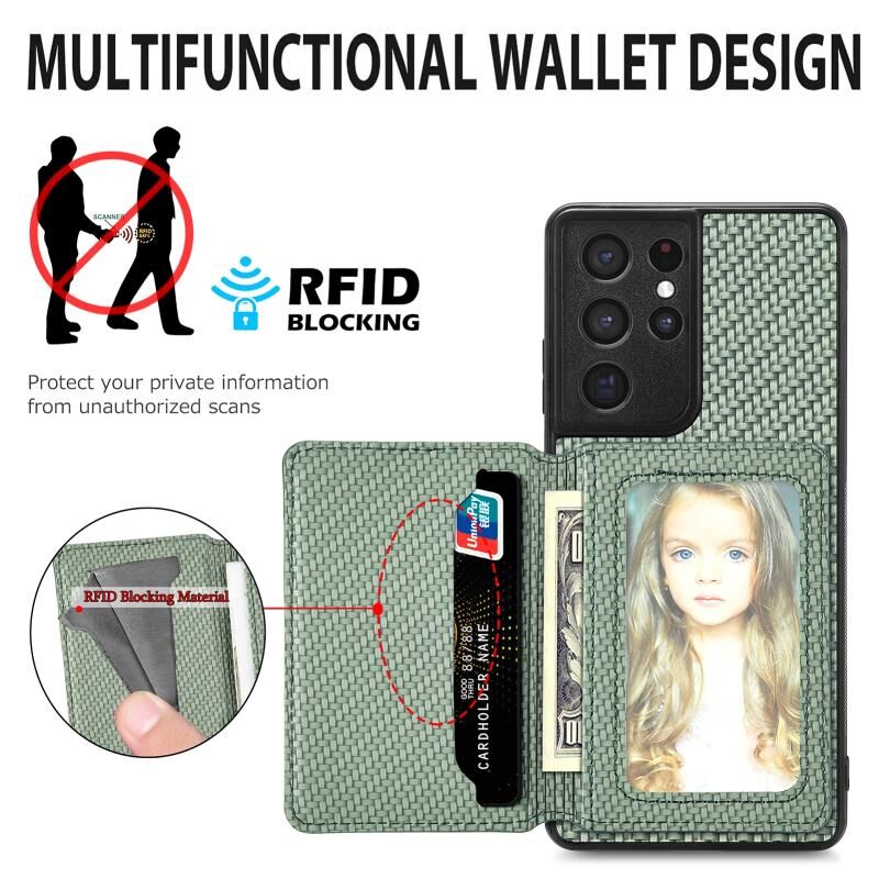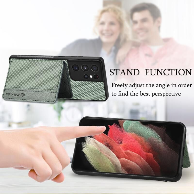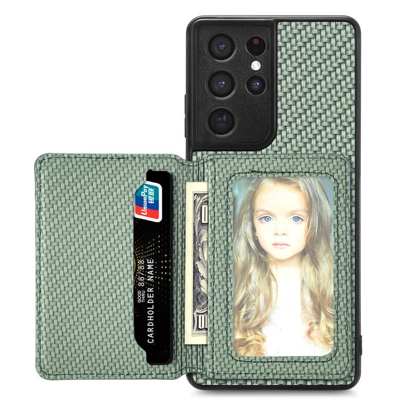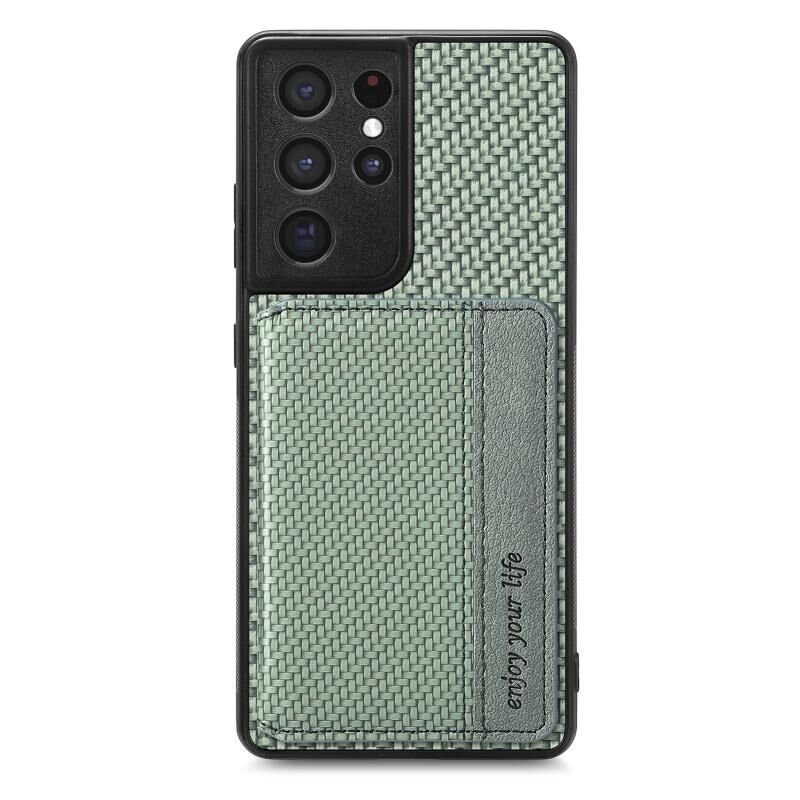 Για Samsung Galaxy S21 Ultra 5G ίνες άνθρακα μαγνητική κάρτα πορτοφόλι τσάντα υπόθεση τηλεφώνου (πράσινο)