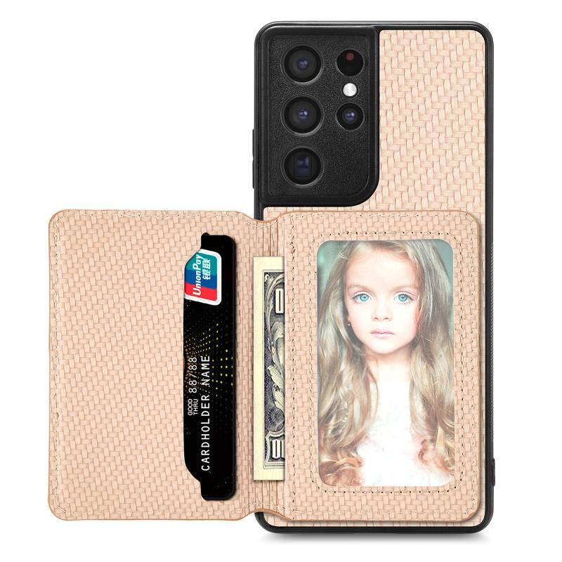 Για Samsung Galaxy S21 Ultra 5G Carbon Fiber μαγνητική κάρτα πορτοφόλι τσάντα υπόθεση τηλεφώνου (χακί)