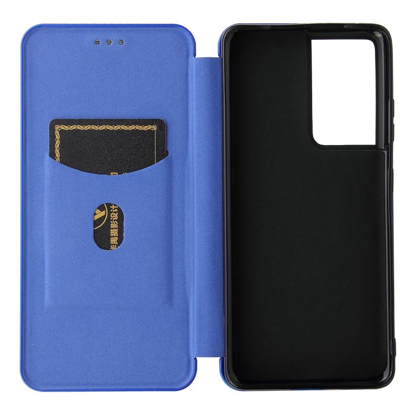 For Samsung Galaxy S21 Ultra 5G Carbon Fiber Texture Horizontal Flip TPU + PC + PU Leather Case with Card Slot(Blue)