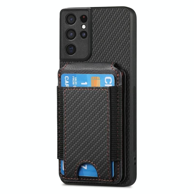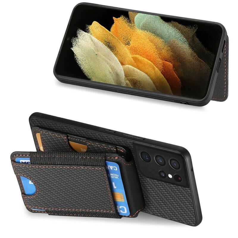 Για Samsung Galaxy S21 Ultra 5G Carbon Fiber Κάθετη Flip Wallet Stand τηλέφωνο υπόθεση (Μαύρο)