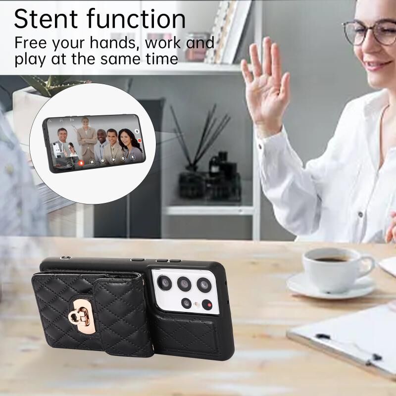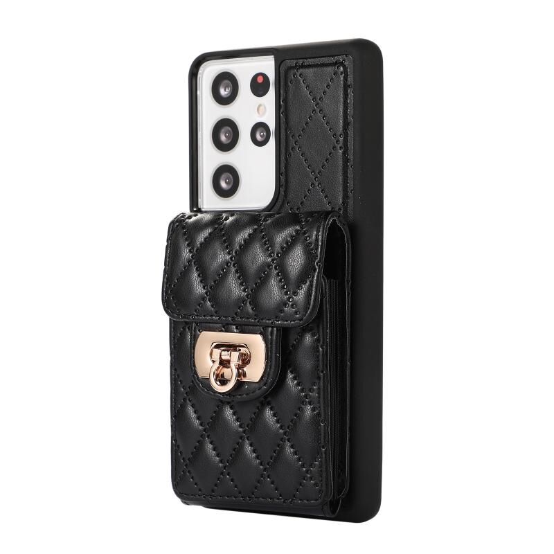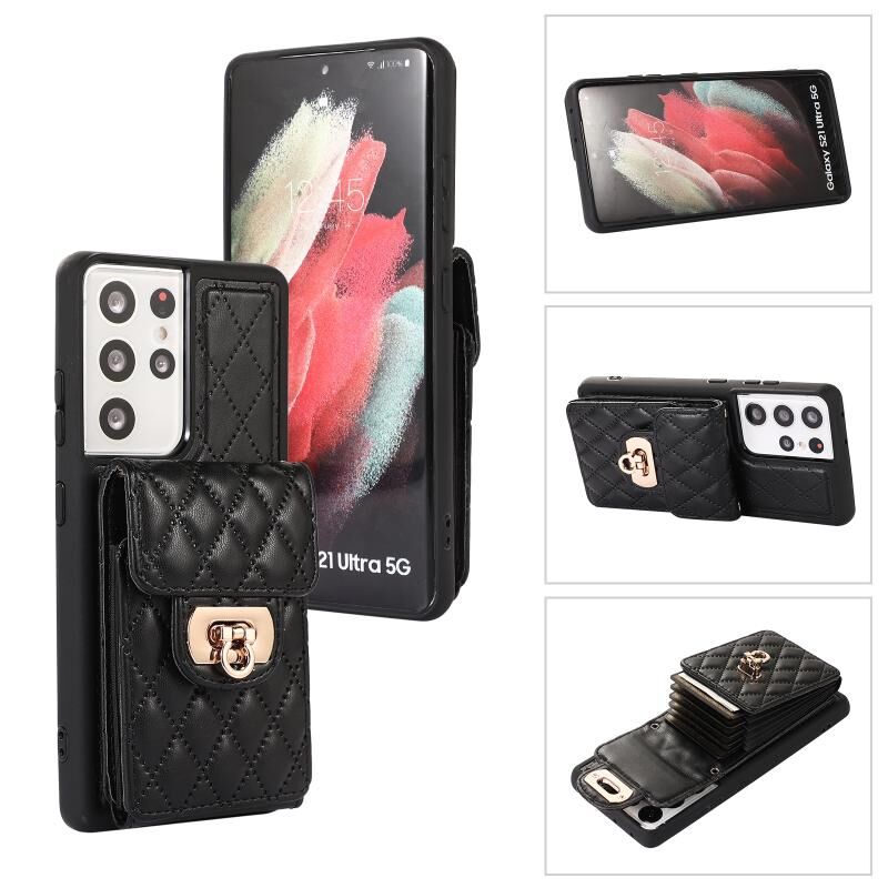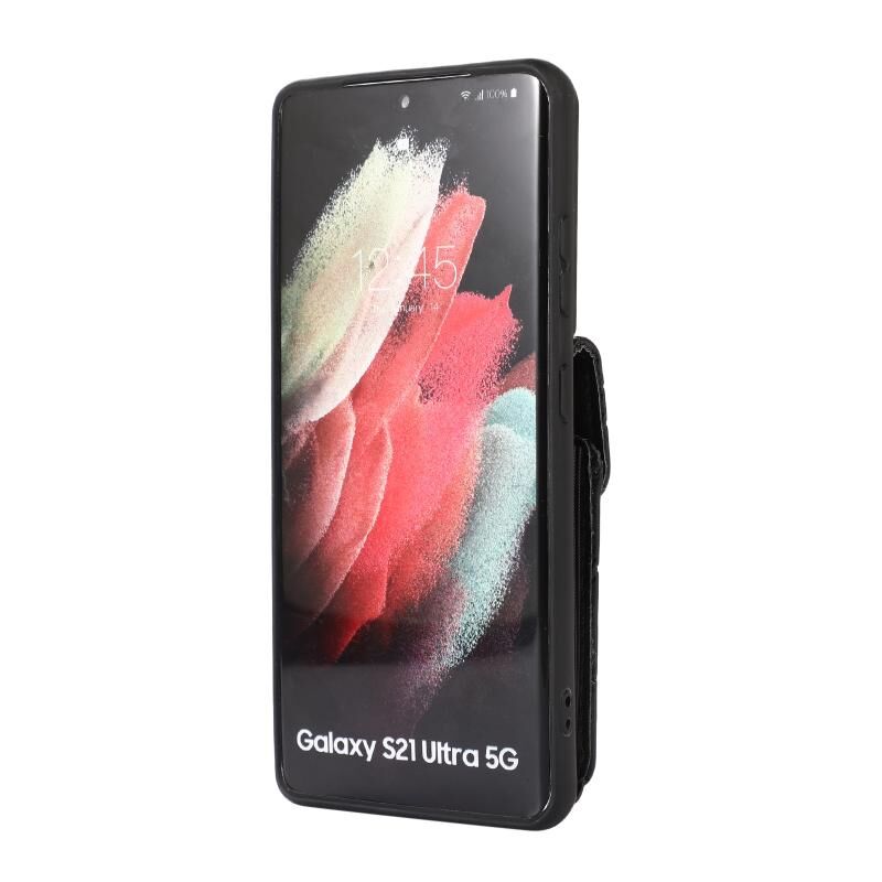 Για Samsung Galaxy S21 Ultra 5G Υποδοχή κάρτας δερμάτινη θήκη τηλεφώνου (Μαύρο)
