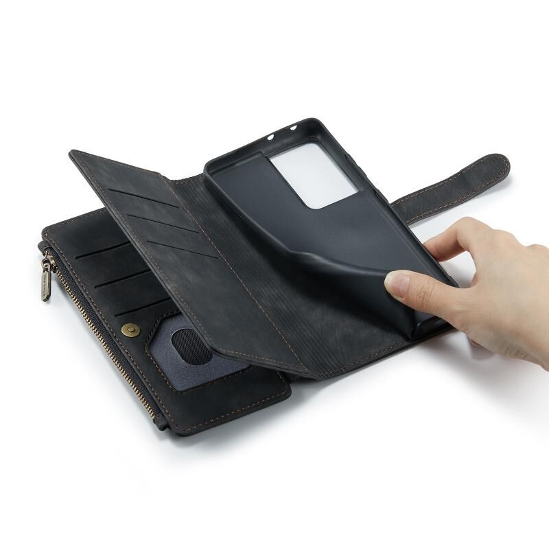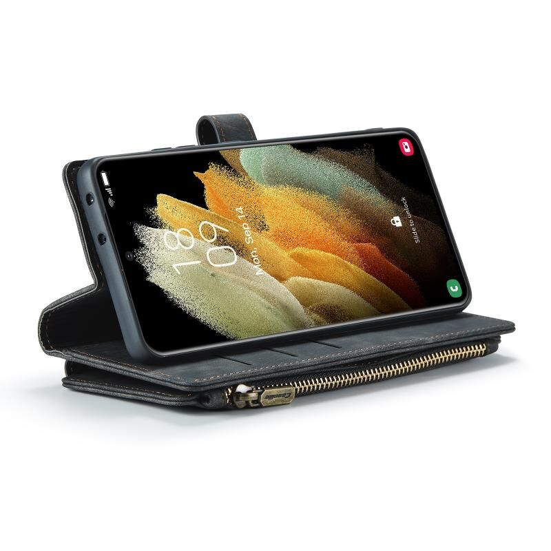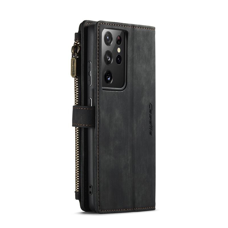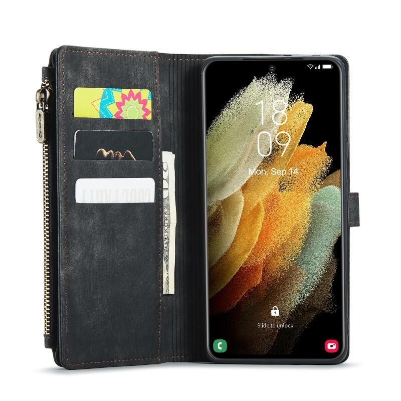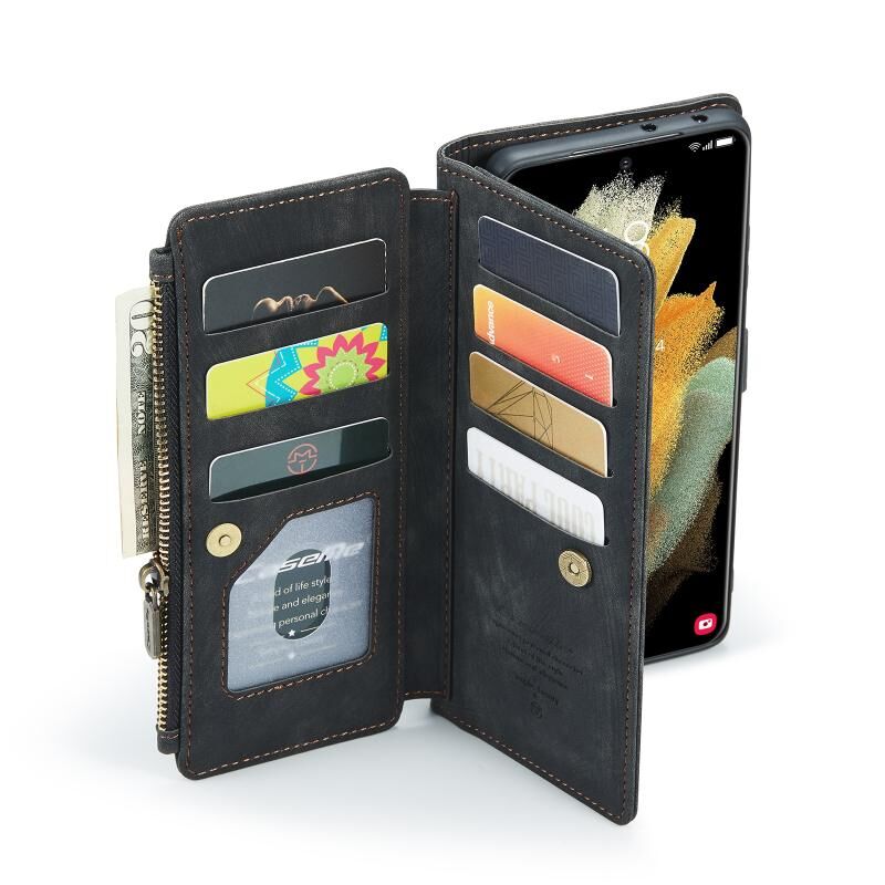 Θήκη για Samsung Galaxy S21 Ultra 5G CaseMe-C30 PU + TPU Πολυλειτουργική Οριζόντια Δερμάτινη Θήκη με Στήριξη & Θήκη Καρτών & Πορτοφόλι & Θήκη με Φερμουάρ (Μαύρο) (CaseMe)