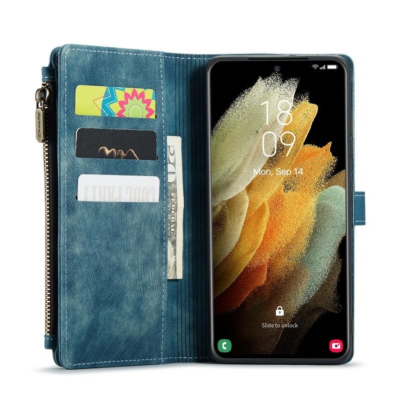 Θήκη για Samsung Galaxy S21 Ultra 5G CaseMe-C30 PU + TPU Πολυλειτουργική Οριζόντια Δερμάτινη Θήκη με Στήριξη & Θήκη Καρτών & Πορτοφόλι & Θήκη με Φερμουάρ (Μαύρο) (CaseMe)