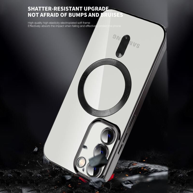 Θήκη τηλεφώνου Samsung Galaxy S21 Ultra 5G με επίστρωση υφής CD, TPU και MagSafe, με προστατευτική μεμβράνη φακού (Μαύρο)