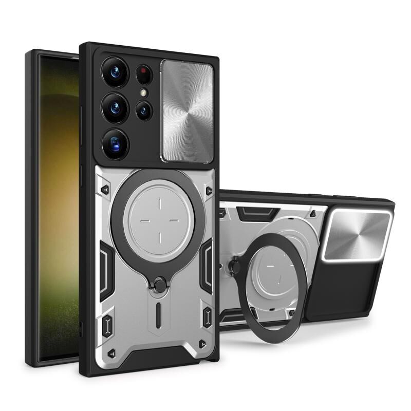 Θήκη κινητού τηλεφώνου με μαγνητική βάση και συρόμενο προστατευτικό κάμερας CD Texture για Samsung Galaxy S21 Ultra 5G (Ροζ)