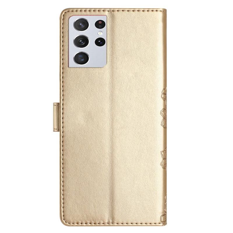 Θήκη τηλεφώνου Samsung Galaxy S21 Ultra 5G Cherry Blossom Butterfly με ανάγλυφο PU υφή δέρματος (Κόκκινο)