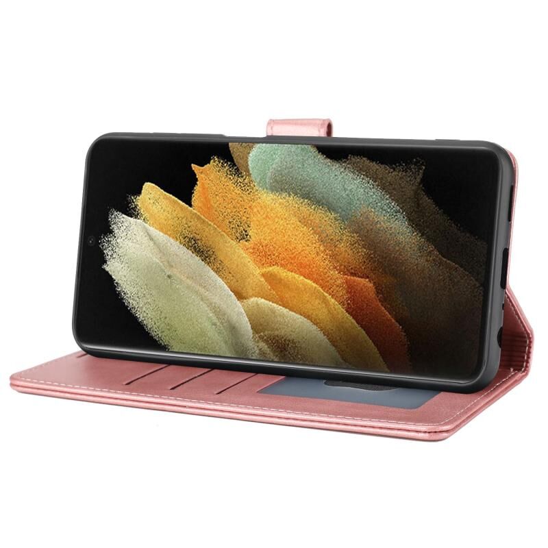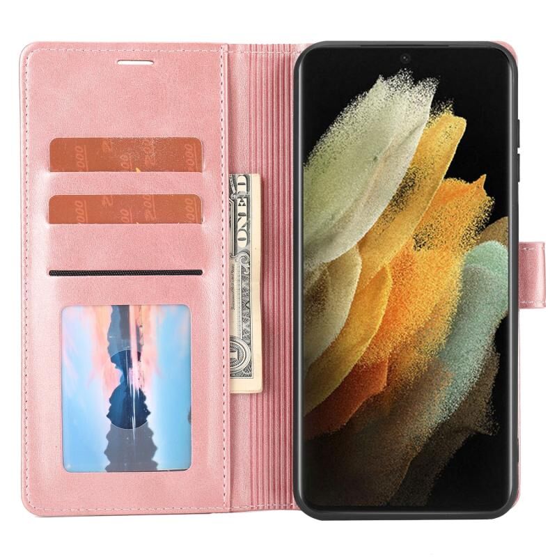 Για Samsung Galaxy S21 Ultra 5G Κλασικό πορτοφόλι Flip δερμάτινη θήκη τηλεφώνου (ροζ)