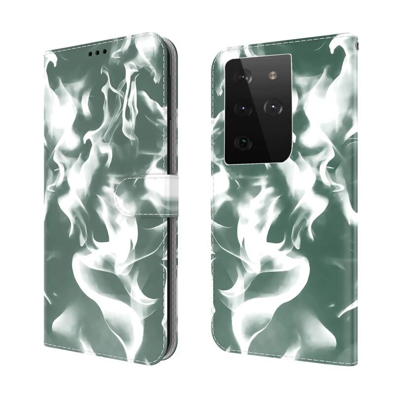 Για Samsung Galaxy S21 Ultra 5G Cloud Fog μοτίβο οριζόντια Flip δερμάτινη θήκη με κάτοχο & υποδοχή για κάρτες & πορτοφόλι (σκούρο πράσινο)