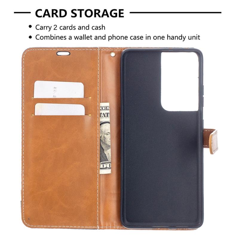 For Samsung Galaxy S21 Ultra 5G Color Matching Denim Texture Horizontal Flip Leather Case with Holder & Card Slots & Wallet & Lanyard(Black)