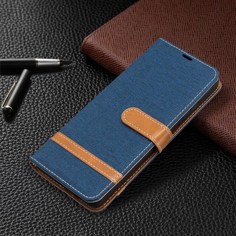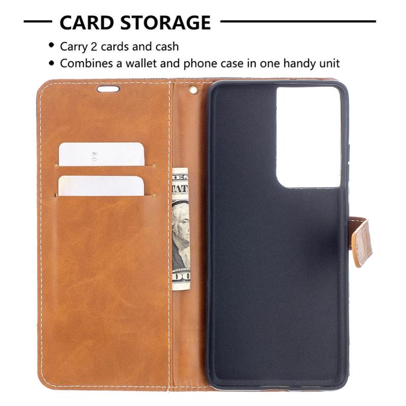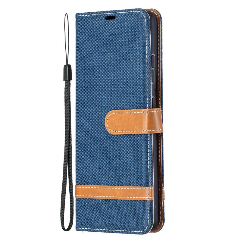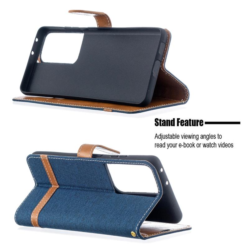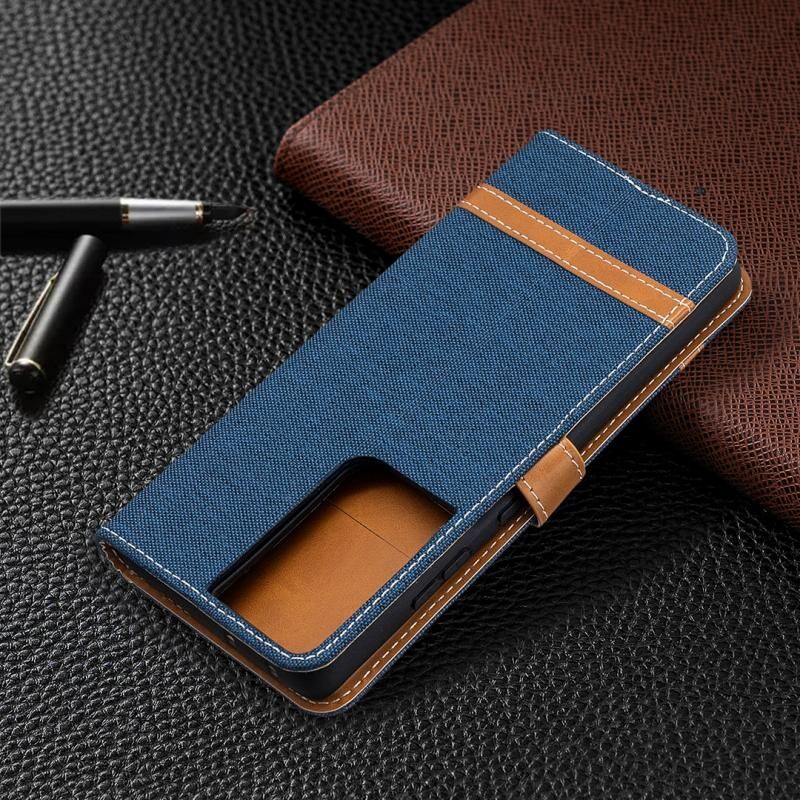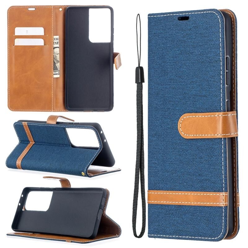 For Samsung Galaxy S21 Ultra 5G Color Matching Denim Texture Horizontal Flip Leather Case with Holder & Card Slots & Wallet & Lanyard(Dark Blue)