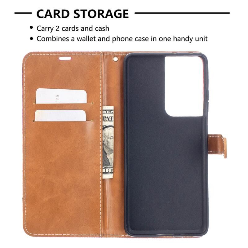 For Samsung Galaxy S21 Ultra 5G Color Matching Denim Texture Horizontal Flip Leather Case with Holder & Card Slots & Wallet & Lanyard(Rose Red)