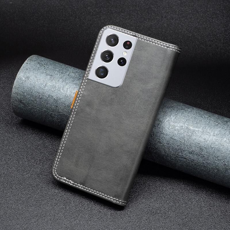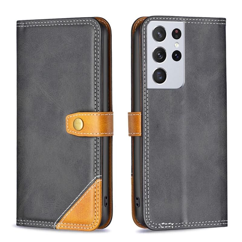 Θήκη τηλεφώνου Samsung Galaxy S21 Ultra 5G από δέρμα με διπλή ραφή και αντιστοίχιση χρώματος (Μαύρο)