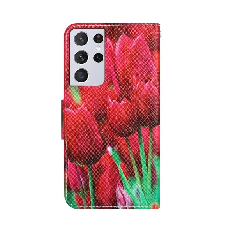 Θήκη τηλεφώνου Samsung Galaxy S21 Ultra 5G από δέρμα με έγχρωμο σχέδιο (Τουλίπες)