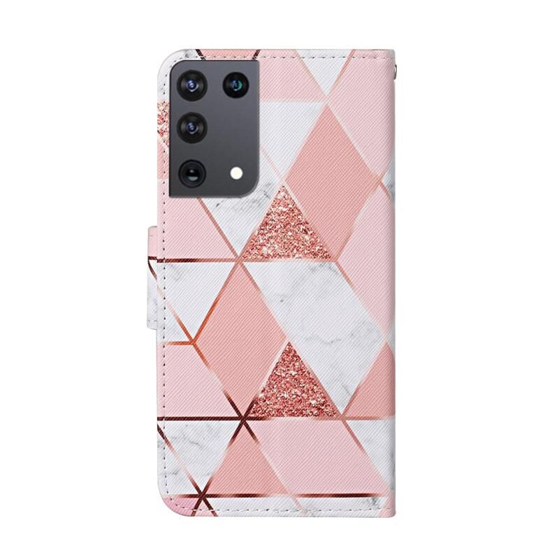Θήκη δέρματος οριζόντιας αναδίπλωσης με σχέδιο ζωγραφικής και χρώματα για Samsung Galaxy S21 Ultra 5G, με βάση στήριξης, θήκες καρτών, πορτοφόλι και κορδόνι (Μάρμαρο)