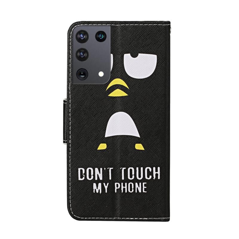 Θήκη δέρματος οριζόντιας αναδίπλωσης με σχέδιο πολύχρωμης ζωγραφικής για Samsung Galaxy S21 Ultra 5G με βάση στήριξης & υποδοχές καρτών & πορτοφόλι & κορδόνι (Πιγκουίνος)