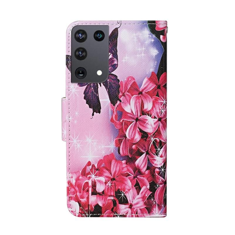 Θήκη δέρματος οριζόντιας αναδίπλωσης με σχέδιο πολύχρωμης ζωγραφικής για Samsung Galaxy S21 Ultra 5G με βάση στήριξης & υποδοχές καρτών & πορτοφόλι & κορδόνι (Μαύρη Γάτα)