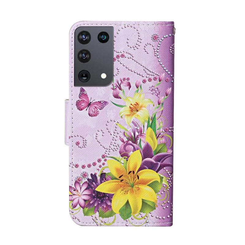Θήκη δέρματος οριζόντιας αναδίπλωσης με σχέδιο πολύχρωμης ζωγραφικής για Samsung Galaxy S21 Ultra 5G με βάση στήριξης & υποδοχές καρτών & πορτοφόλι & κορδόνι (Μαύρη Γάτα)