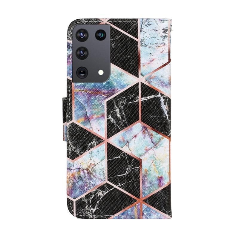 Θήκη Samsung Galaxy S21 Ultra 5G με πολύχρωμο σχέδιο, οριζόντια αναδιπλούμενη από δερματίνη PU με βάση στήριξης, θήκες για κάρτες, πορτοφόλι & λουρί (Μαύρο Μάρμαρο)