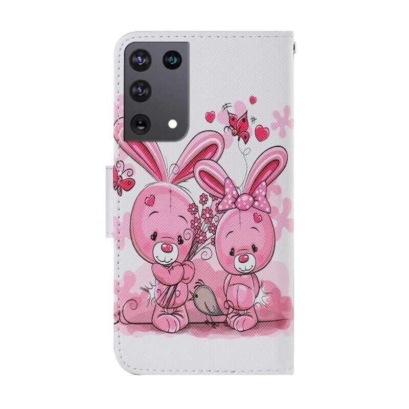 Θήκη Samsung Galaxy S21 Ultra 5G με πολύχρωμο σχέδιο, οριζόντια αναδιπλούμενη από δερματίνη PU με βάση στήριξης, θήκες για κάρτες, πορτοφόλι & λουρί (Χαριτωμένο Κουνελάκι)