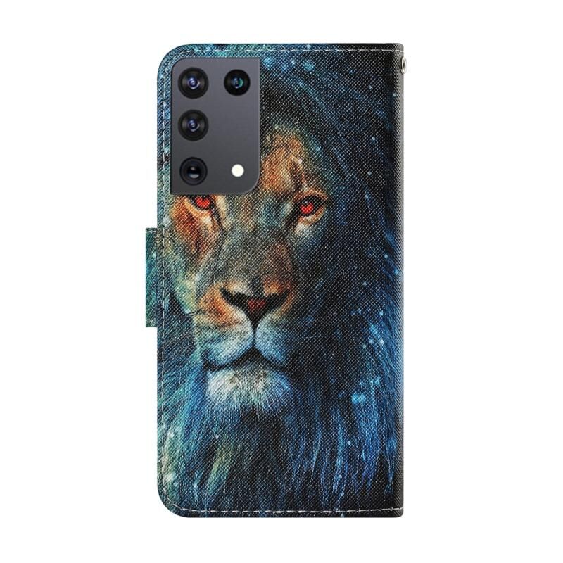 Θήκη Samsung Galaxy S21 Ultra 5G με πολύχρωμο σχέδιο, οριζόντια αναδιπλούμενη από δερματίνη PU με βάση στήριξης, θήκες για κάρτες, πορτοφόλι & λουρί (Λιοντάρι)