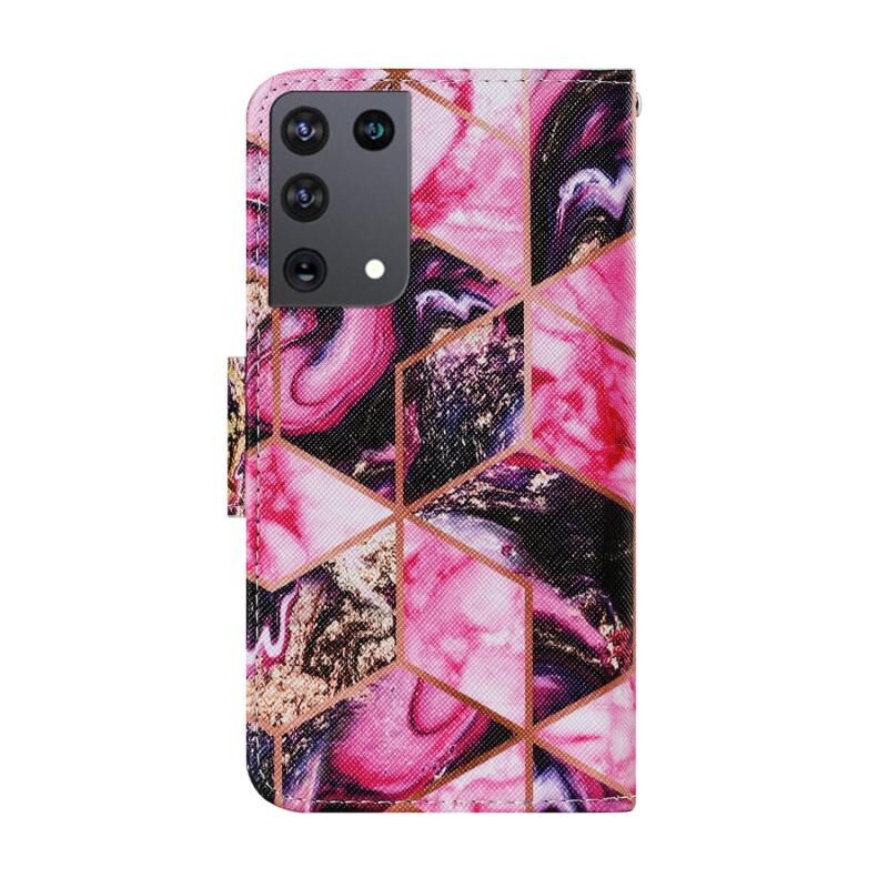 Θήκη Samsung Galaxy S21 Ultra 5G με πολύχρωμο σχέδιο, οριζόντια αναδιπλούμενη από δερματίνη PU με βάση στήριξης, θήκες για κάρτες, πορτοφόλι & λουρί (Μαύρο Μάρμαρο)