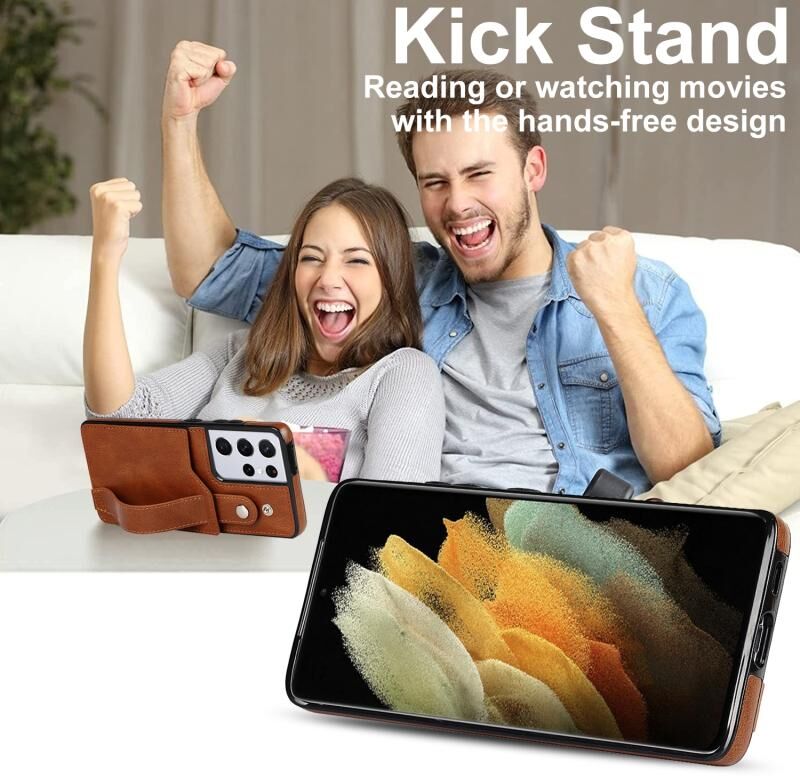 Για Samsung Galaxy S21 Ultra 5G Crazy Horse Texture Shockproof TPU + PU δέρμα υπόθεση με υποδοχή κάρτας & λουράκι καρπού κάτοχος (καφέ)