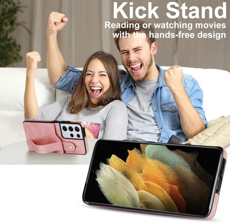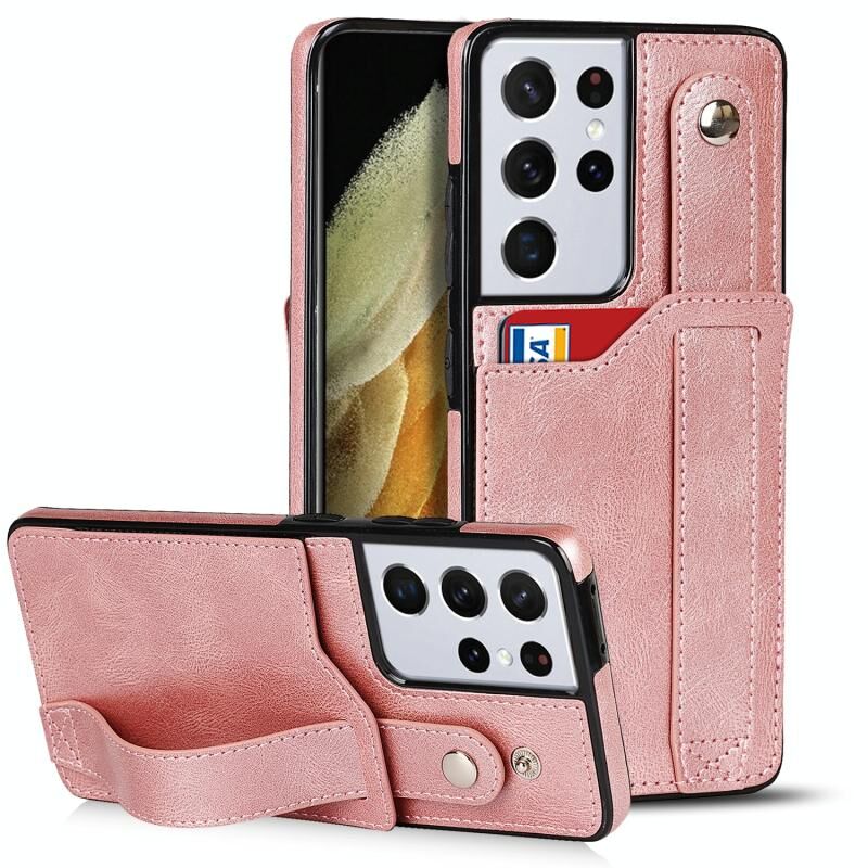 Για το Samsung Galaxy S21 Ultra 5G Crazy Horse Texture Shockproof TPU + PU δέρμα υπόθεση με υποδοχή κάρτας & στήριγμα λουράκι καρπού (Rose Gold)
