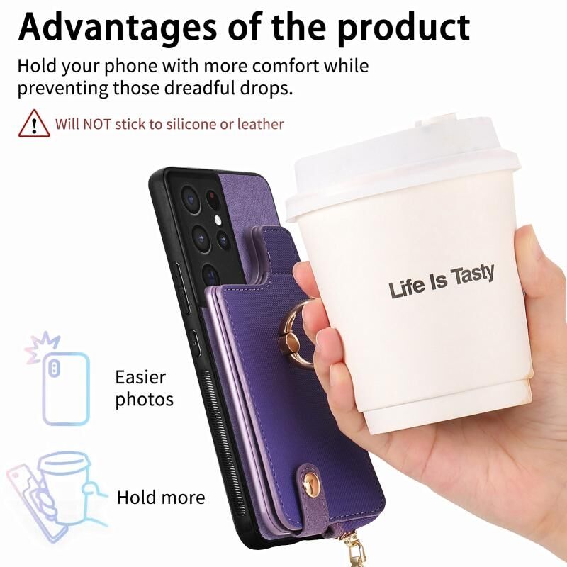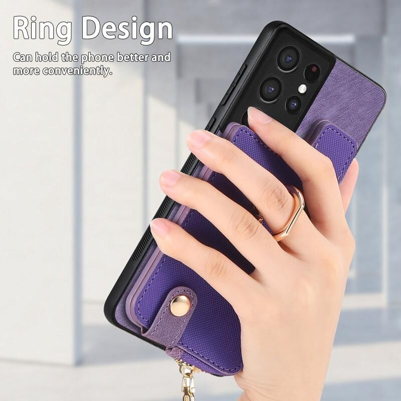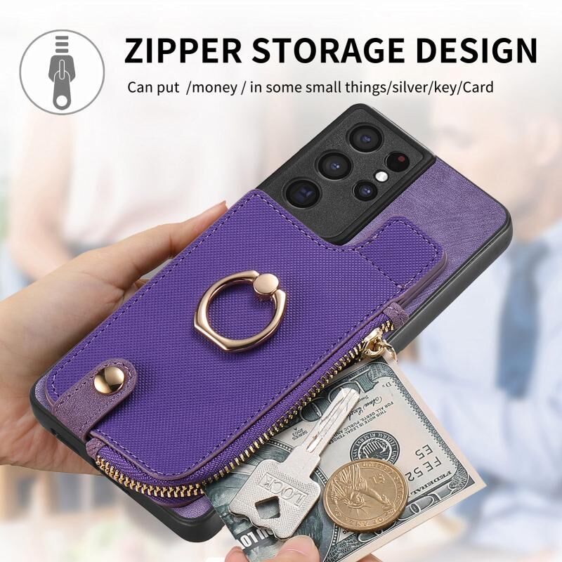 Για Samsung Galaxy S21 Ultra 5G Cross Δερμάτινο δαχτυλίδι κάθετη φερμουάρ πορτοφόλι πίσω υπόθεση τηλεφώνου (μωβ)