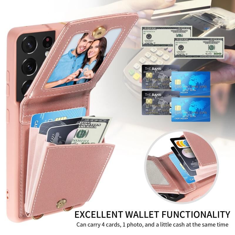 Για Samsung Galaxy S21 Ultra 5G Crossbody Lanyard φερμουάρ πορτοφόλι δερμάτινη θήκη τηλεφώνου (Rose Gold)