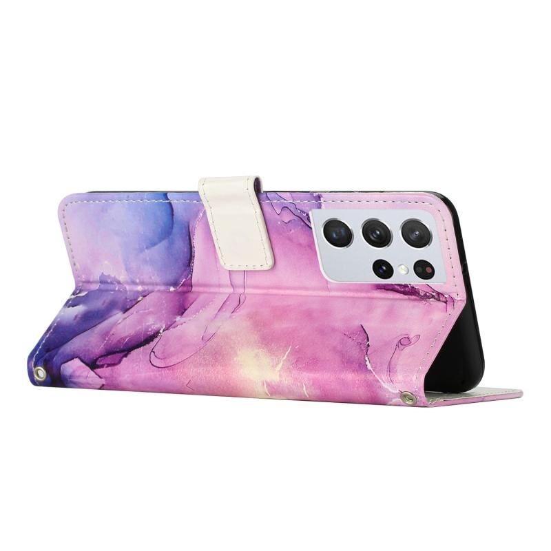 Θήκη τηλεφώνου Samsung Galaxy S21 Ultra 5G, δερμάτινη με ζωγραφιστό σχέδιο μαρμάρου, σε στυλ crossbody (Μωβ)