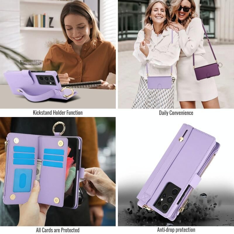 Για Samsung Galaxy S21 Ultra 5G Δαχτυλίδι Crossbody Πολυλειτουργικό πορτοφόλι Δερμάτινη θήκη τηλεφώνου (μωβ)