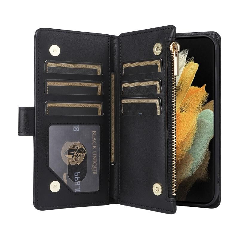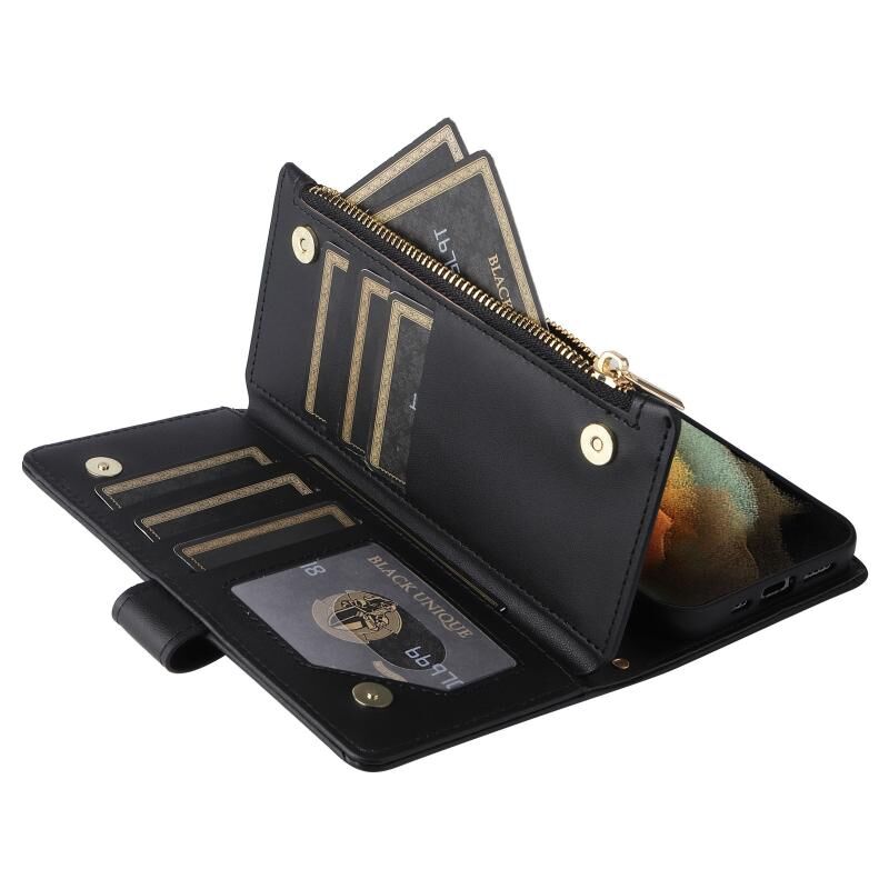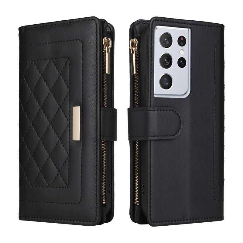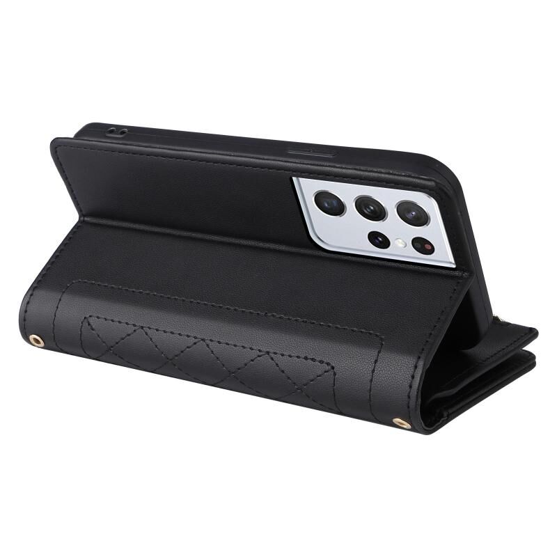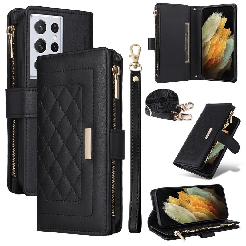 Για Samsung Galaxy S21 Ultra 5G Crossbody φερμουάρ πορτοφόλι ρόμβος δερμάτινη θήκη τηλεφώνου (μαύρο)