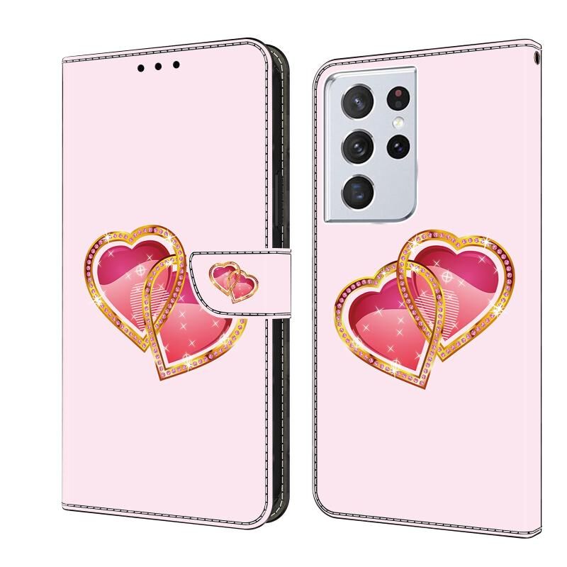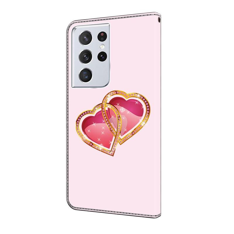 Θήκη τηλεφώνου Samsung Galaxy S21 Ultra 5G από δέρμα με κρυστάλλινη βαφή (Ροζ Αγάπη)
