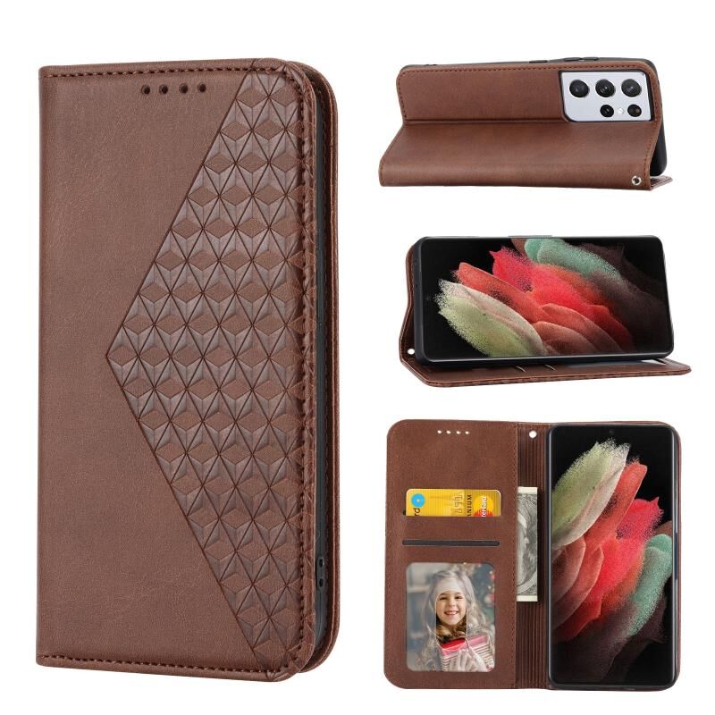 Για Samsung Galaxy S21 Ultra 5G Cubic Grid Calf Texture μαγνητικό κλείσιμο δερμάτινη θήκη τηλεφώνου (καφέ)