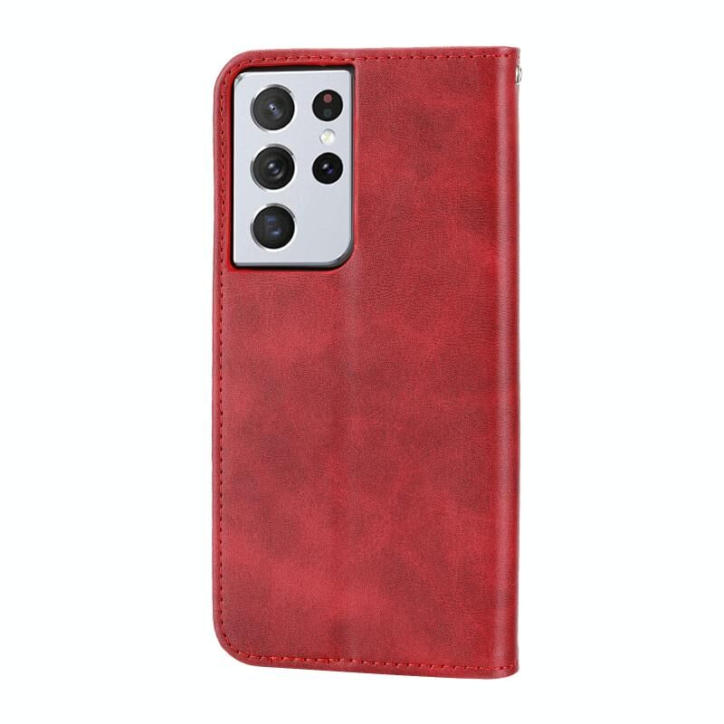 Για Samsung Galaxy S21 Ultra 5G Cubic Grid Calf Texture μαγνητικό κλείσιμο δερμάτινη θήκη τηλεφώνου (κόκκινο)