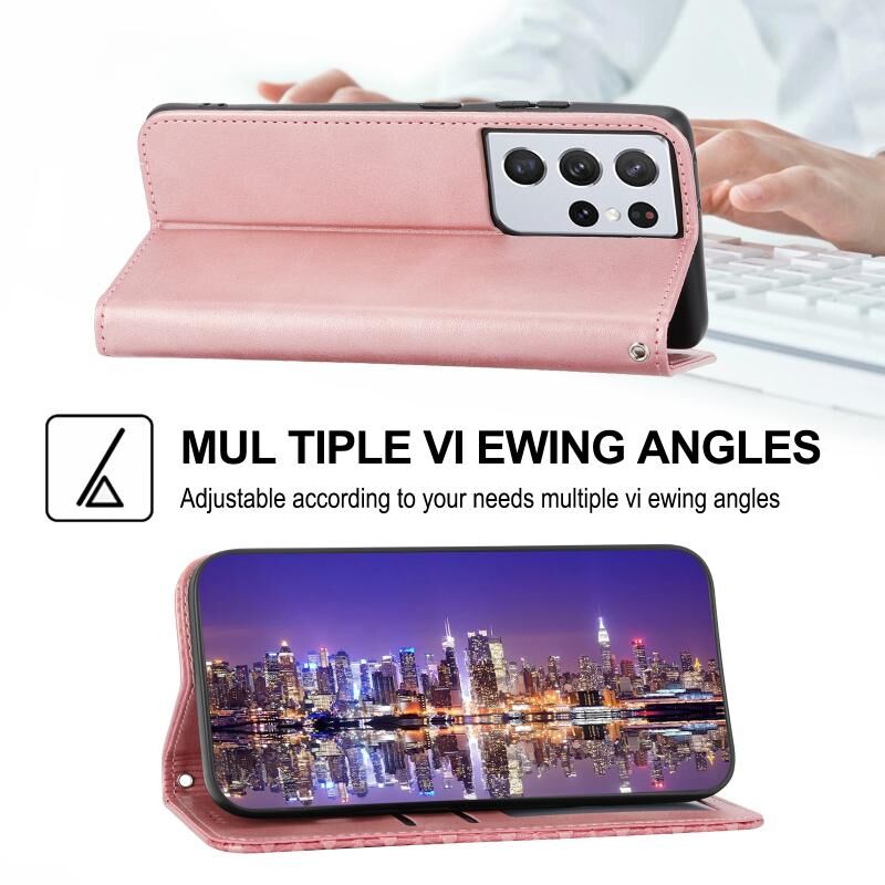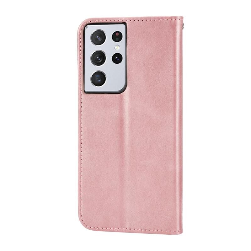 Για Samsung Galaxy S21 Ultra 5G Cubic Grid Calf υφή μαγνητικό κλείσιμο δερμάτινη θήκη τηλεφώνου (ροζ χρυσό)