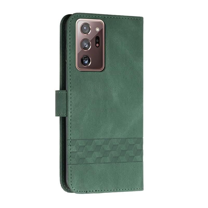 For Samsung Galaxy S21 Ultra 5G Cubic Skin Feel Flip Leather Phone Case(Dark Green)