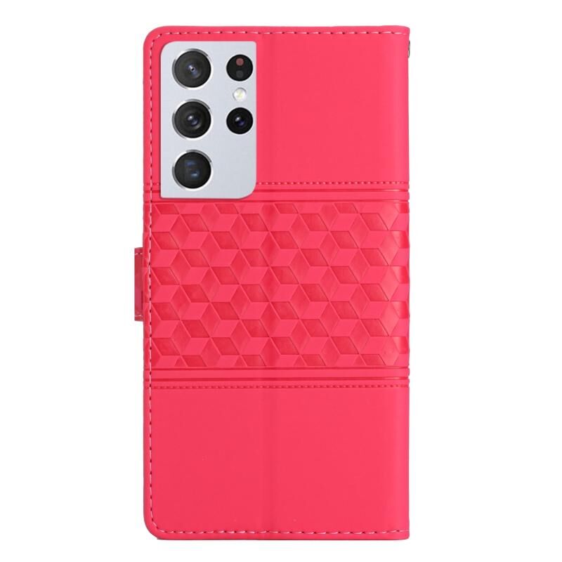 Για Samsung Galaxy S21 Ultra 5G Diamond ανάγλυφο δέρμα αίσθηση δέρμα τηλέφωνο υπόθεση με κορδόνι (κόκκινο)