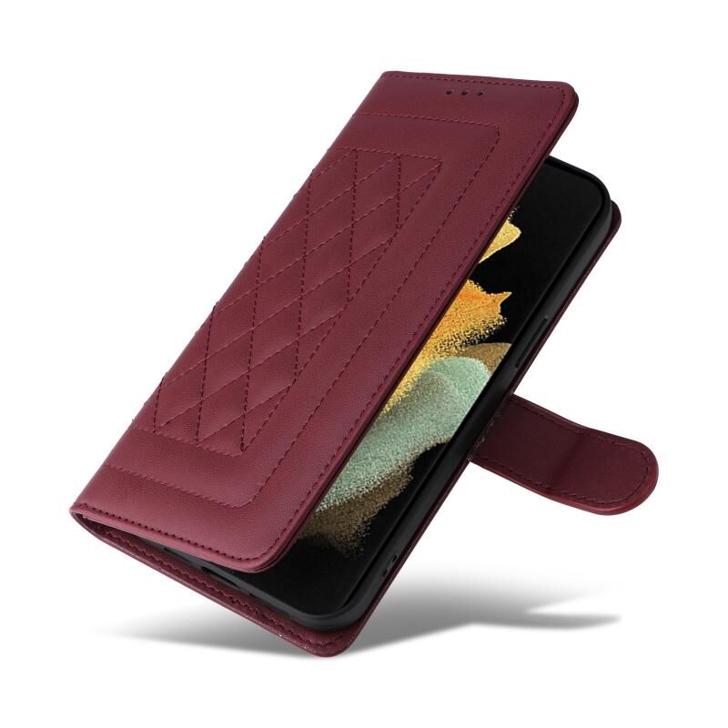 Για Samsung Galaxy S21 Ultra 5G Diamond Lattice δέρμα Flip υπόθεση τηλεφώνου (κόκκινο κρασί)