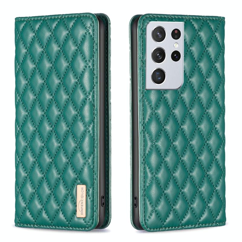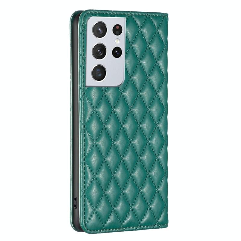 Θήκη τηλεφώνου Samsung Galaxy S21 Ultra 5G Diamond Lattice Magnetic Leather Flip (πράσινο)