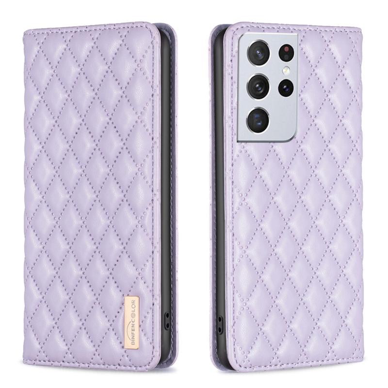 Θήκη τηλεφώνου Samsung Galaxy S21 Ultra 5G Diamond Lattice Magnetic Leather Flip (Μωβ)