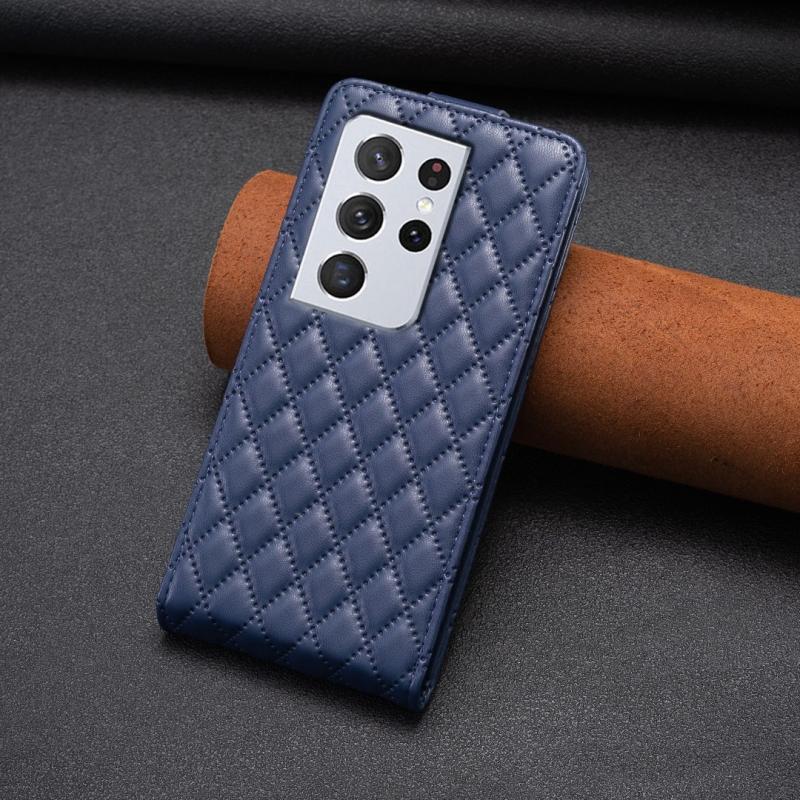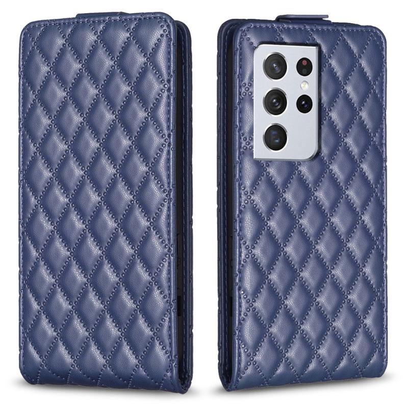 For Samsung Galaxy S21 Ultra 5G Diamond Lattice Vertical Flip Leather Phone Case(Blue)