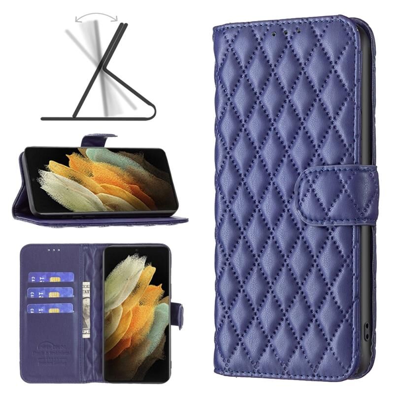 Για Samsung Galaxy S21 Ultra 5G Diamond Lattice πορτοφόλι δέρμα Flip υπόθεση τηλεφώνου (μπλε)