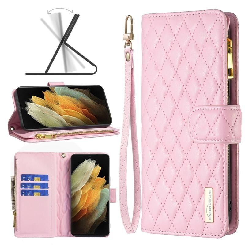 Θήκη τηλεφώνου Samsung Galaxy S21 Ultra 5G, Δερμάτινη θήκη τύπου πορτοφολιού με φερμουάρ και σχέδιο διαμαντόπετρας (Λευκό)