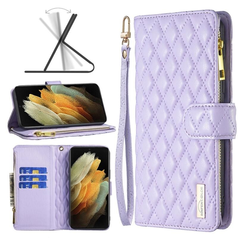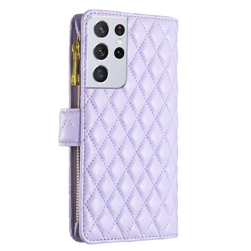 Θήκη τηλεφώνου Samsung Galaxy S21 Ultra 5G, Δερμάτινη θήκη τύπου πορτοφολιού με φερμουάρ και σχέδιο διαμαντόπετρας (Λευκό)