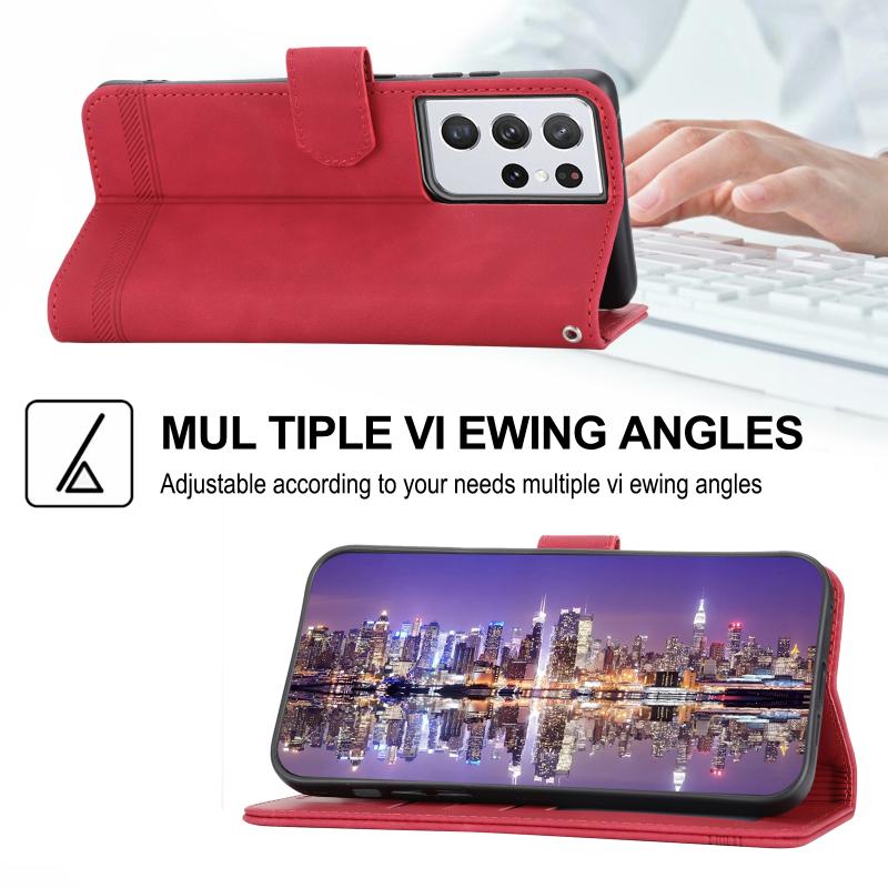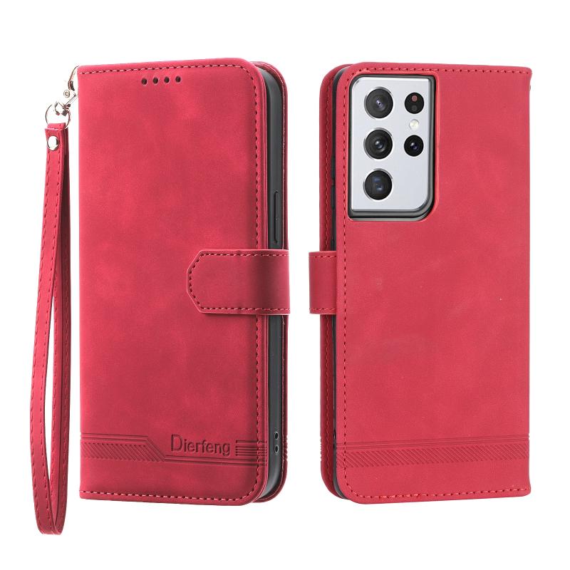 Θήκη κινητού τηλεφώνου Dierfeng Dream Line TPU + Δερμάτινη PU για Samsung Galaxy S21 Ultra 5G (Κόκκινο)