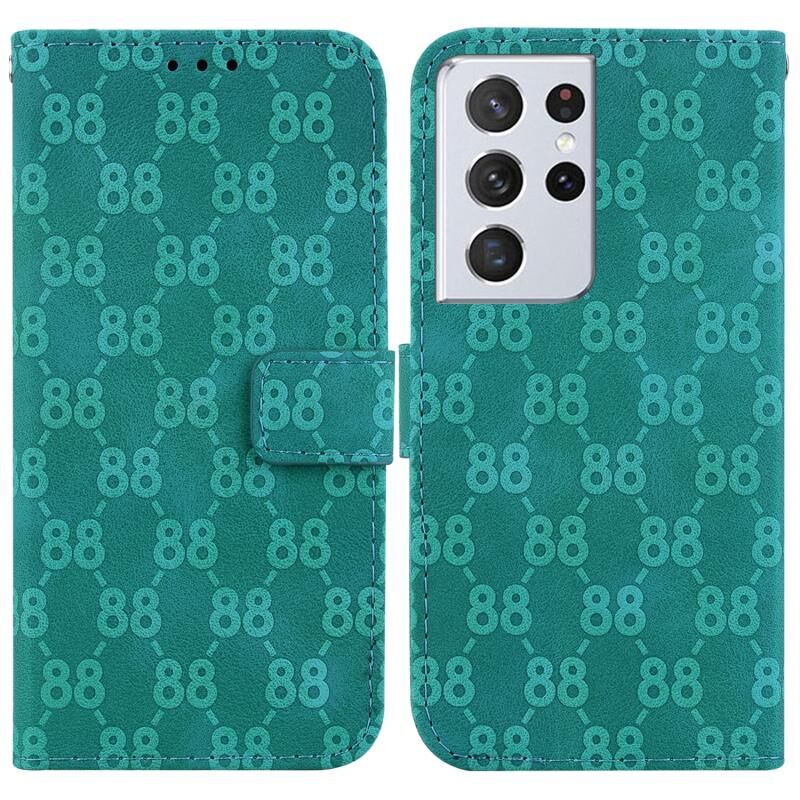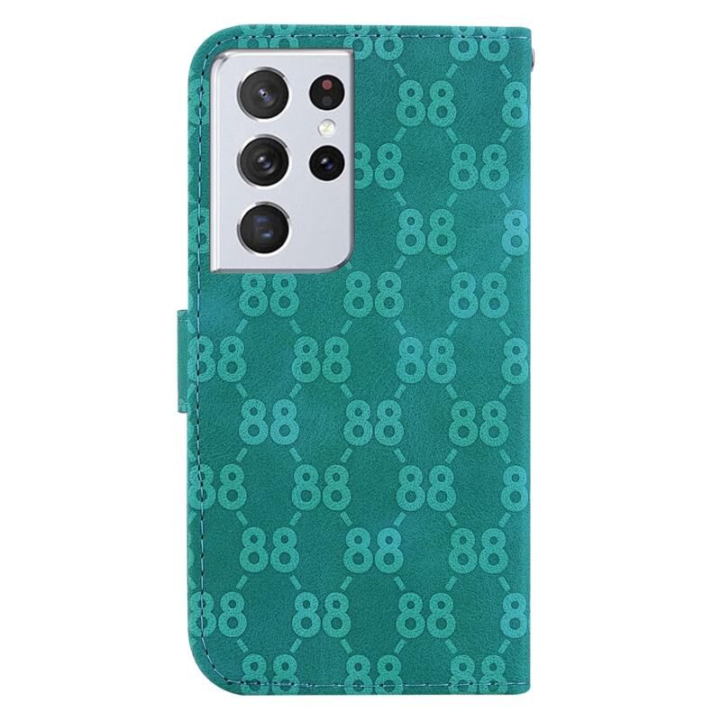 Θήκη τηλεφώνου Samsung Galaxy S21 Ultra 5G Δερμάτινη με ανάγλυφο διπλό σχέδιο σε σχήμα 8 (Πράσινη)