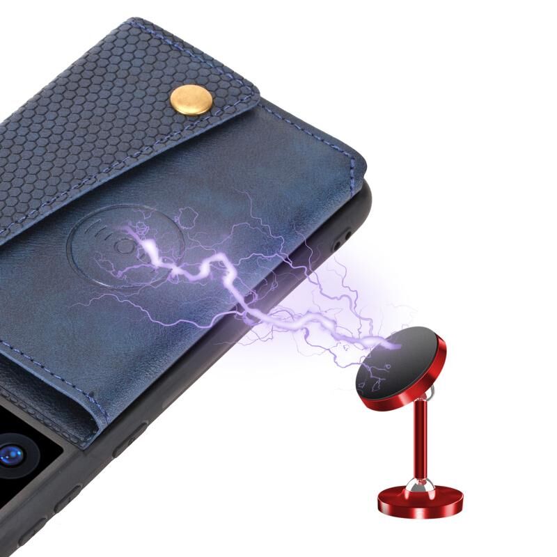 Για Samsung Galaxy S21 Ultra 5G Διπλή πόρπη PU + TPU Shockproof μαγνητική προστατευτική θήκη με υποδοχή κάρτας & κάτοχος (μπλε)